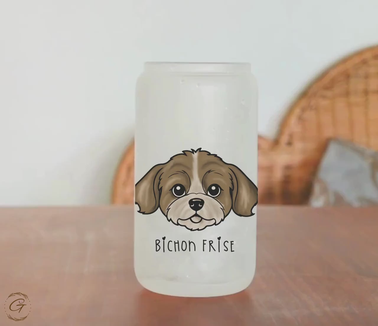 This adorable frosted glass cup features a cute Bichon Frise dog design, perfect for pet lovers. Personalize it with a custom name to make it extra special. Ideal for gifting to dog lovers or as a unique addition to your drinkware collection. Enjoy your favorite beverages in style with this charming and functional cup. It's a great way to show off your love for your furry friend or make a thoughtful gift for someone special.