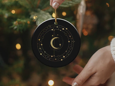 Discover the enchantment of the celestial with this Moon Phase Ornament. Perfect for adding cosmic flair to your home or gifting to a space enthusiast. This unique piece blends earthly charm with astronomical beauty, making it a captivating addition to any decor. Ideal for astrology lovers, it captures the mystical essence of the cosmos. Elevate your space with this bohemian cosmic art decor.