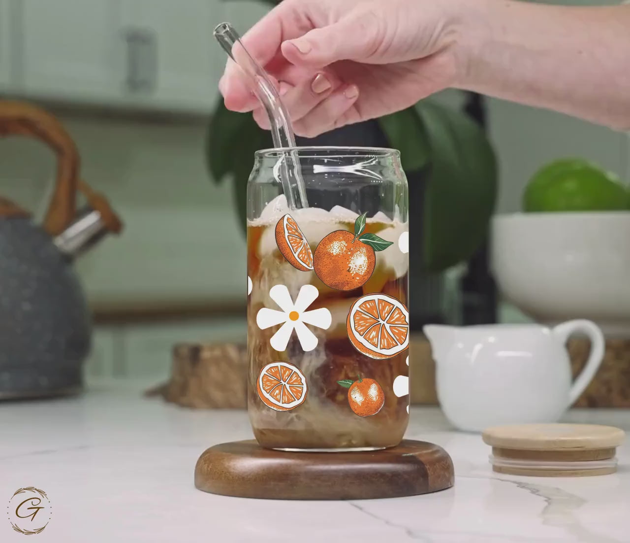Citrus Orange Blossom Glass Cup Bright Floral Design