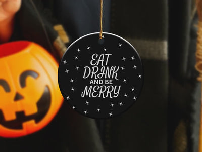 Add some festive cheer to your holiday decor with this "Eat Drink and Be Merry" ornament. Perfect for Christmas tree decoration, this ornament captures the joyful spirit of the season. It makes a wonderful addition to any holiday decor and a great gift for friends and family. Celebrate the holidays in style with this charming and merry ornament!