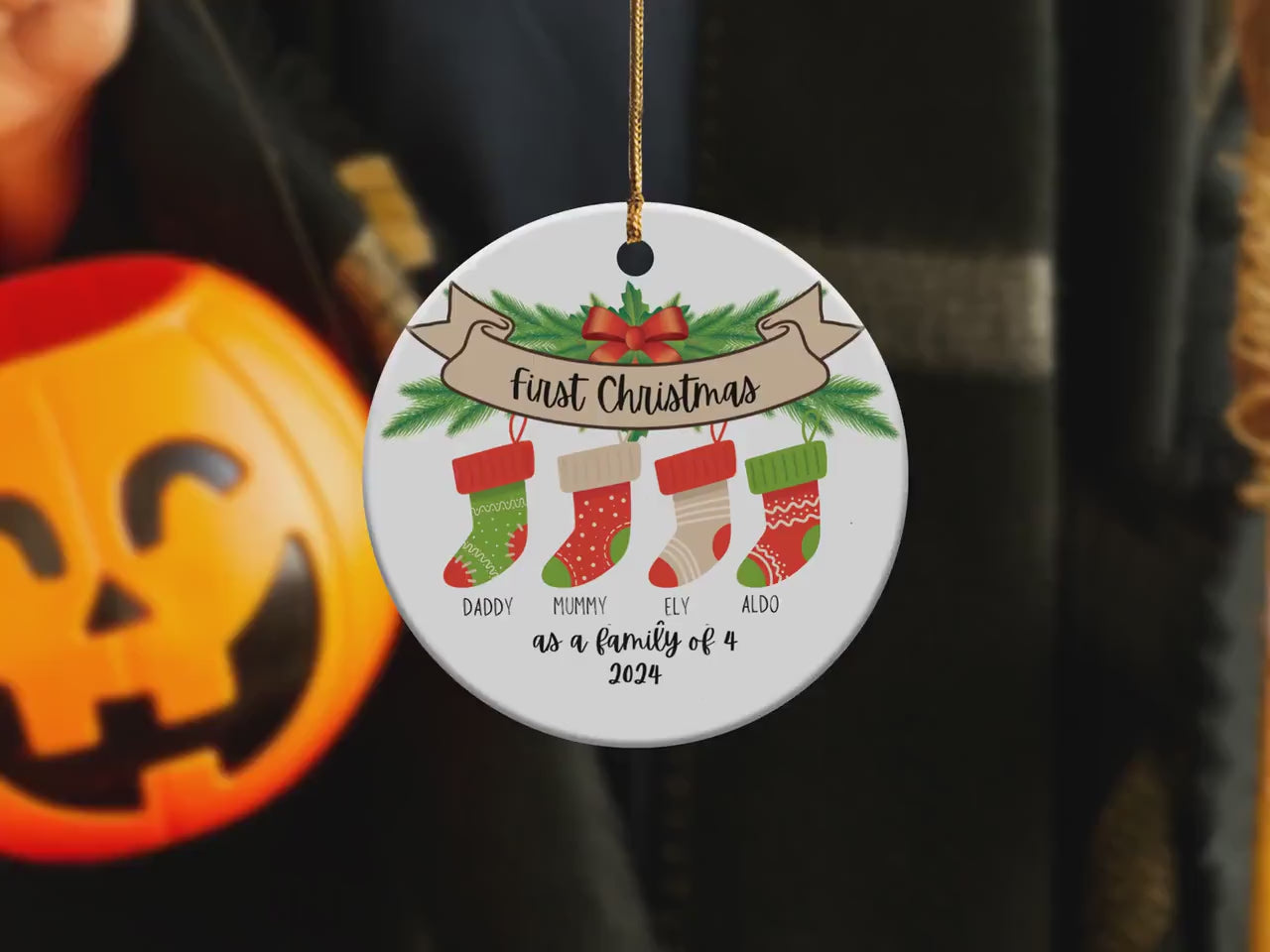 First Christmas Family of 4 Ornament | Personalized Stocking Ornament | Holiday Decor & Christmas Gift 2024 | Unique Gift for Stockings 2024