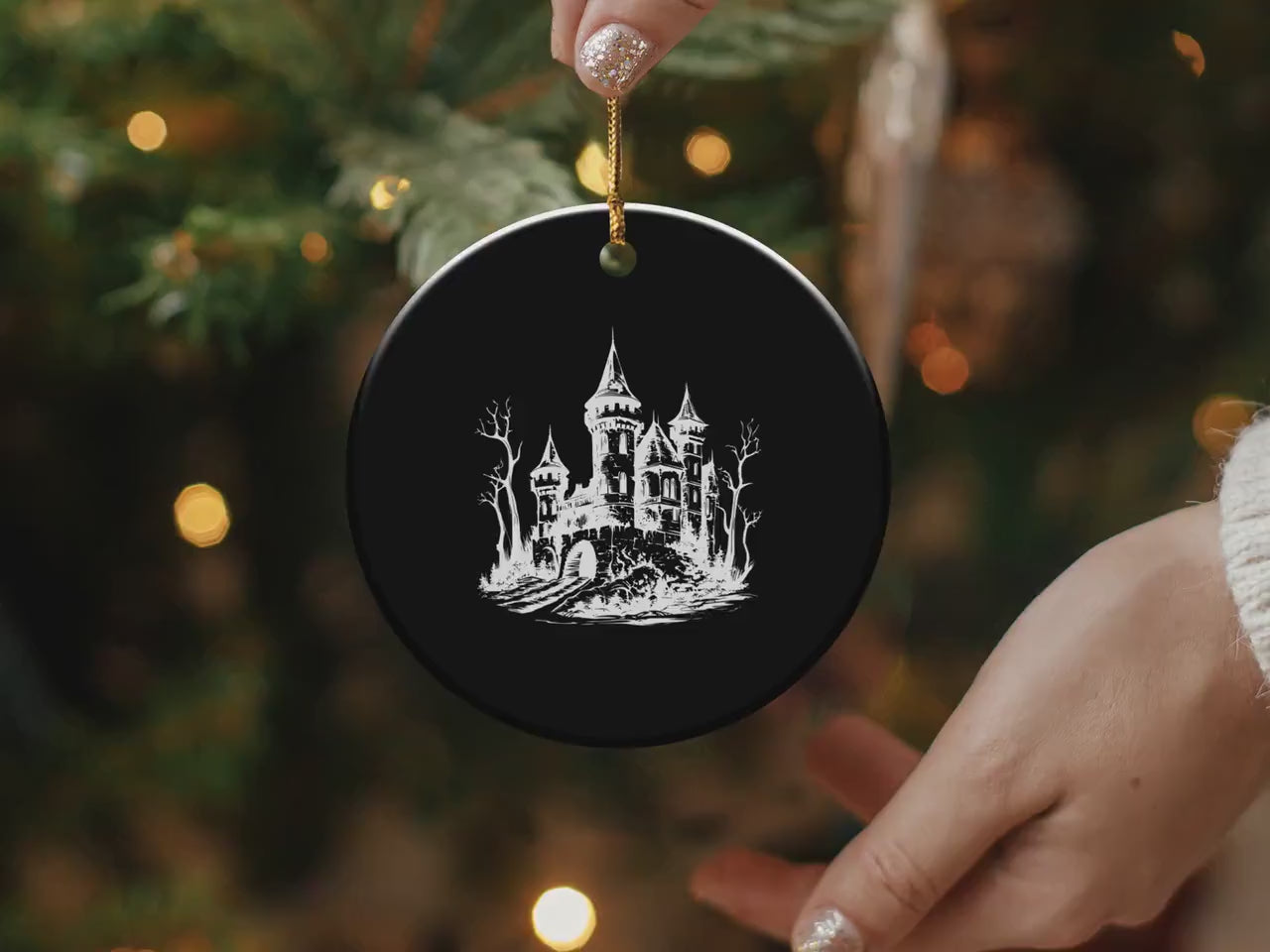 Discover the allure of this Gothic Castle Ornament, perfect for Halloween and all year round. Its intricate black and white design captures the essence of mystery and magic, making it a great centerpiece or collectible item. Ideal for enhancing any room with a touch of spooky elegance, this ornament also makes a unique gift for those who appreciate dark and whimsical decor. Celebrate any occasion with this standout piece.