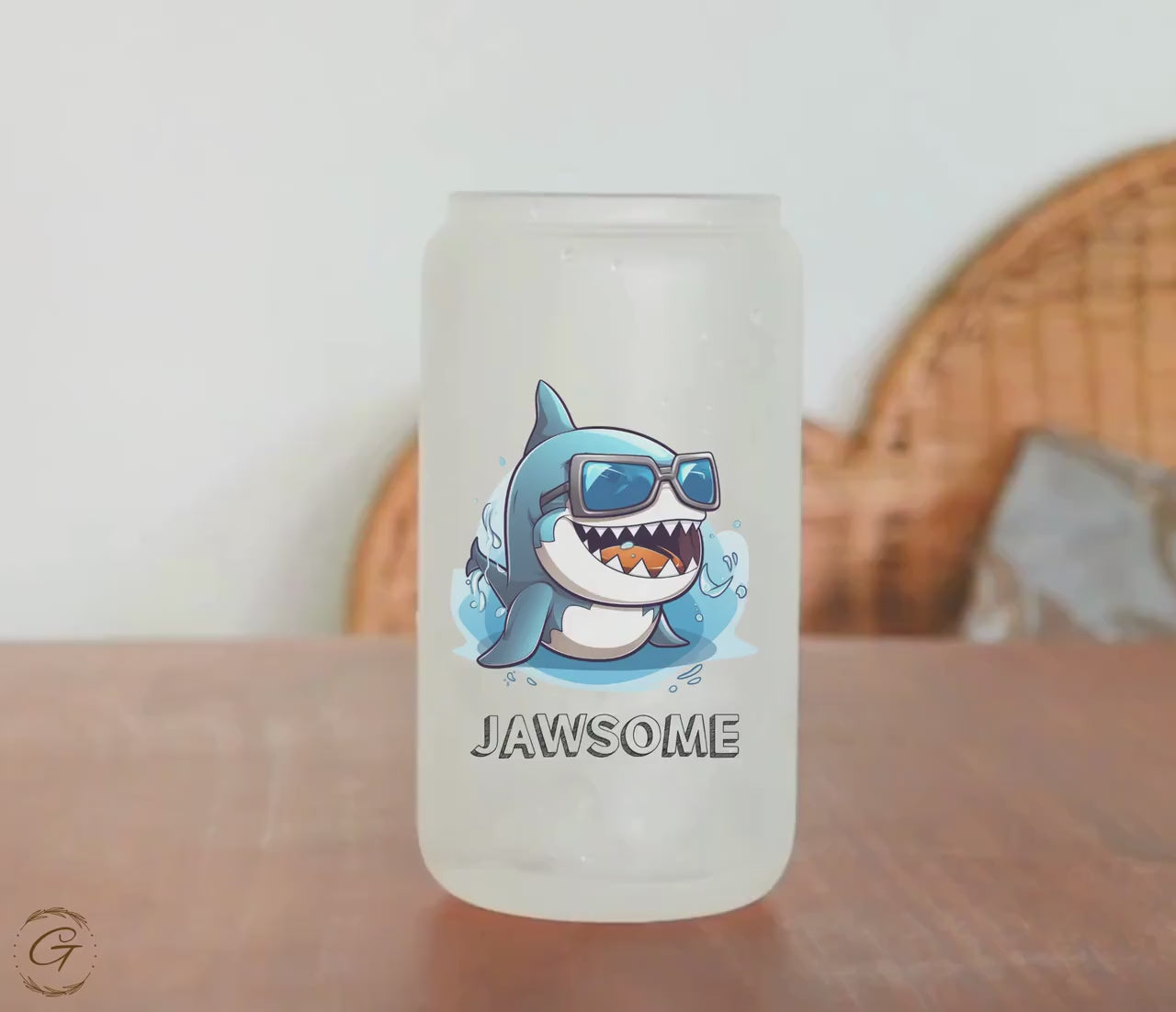 Enjoy your favorite beverages in style with this Jawsome Frosted Glass Cup featuring a fun and cool shark design. This versatile Libbey Ice Coffee Cup is perfect for iced coffee, smoothies, or any drink you love. Ideal as a unique gift for shark lovers, this frosted glass cup adds a playful touch to your drinkware collection. Whether for daily use or as a special gift, this cup is sure to bring a smile to your face.