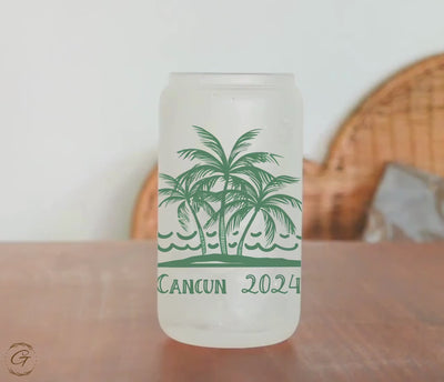Palm Tree Cancun 2024 Personalized Frosted Glass Cup