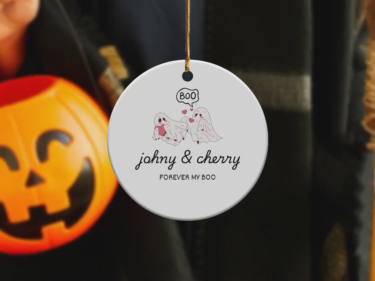 Personalize Cute Ghost Couple Ornament, Halloween Love Decor, Couple Cute Ornament, Spooky Romance Holiday Keepsake, Spooky Romance Ornament