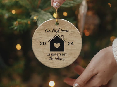 Celebrate a new beginning with this personalized housewarming ornament. Perfect for commemorating your first home, it features custom family details and makes an ideal gift. This unique keepsake will add a personal touch to any holiday decoration, serving as a lasting reminder of your special milestone. Make your new home feel extra special with this custom ornament. Great for gifting to friends, family, or celebrating your own new address.