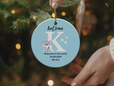 This adorable baby koala ornament is perfect for nursery decor and makes a thoughtful personalized gift for newborns. Celebrate a new arrival with this charming keepsake, featuring a cute koala design. Ideal for baby showers or as a special welcome baby gift.