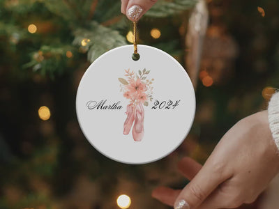 Personalized Ballet Shoes Floral Ornament, Custom Name Keepsake Gifts, Dance Recital Decor, Unique Ballet Lover Gift, Personalized Ornaments
