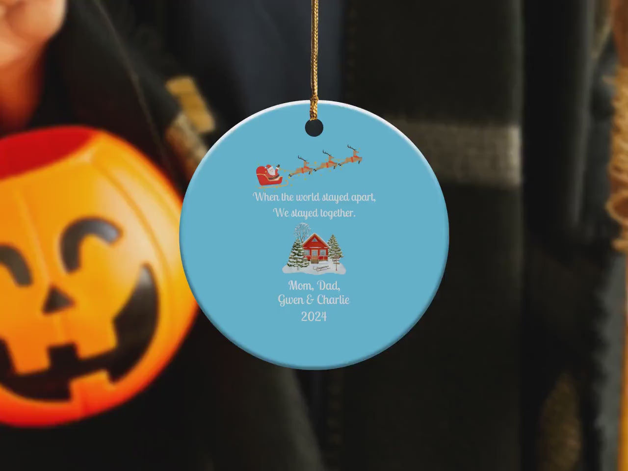 Celebrate the holidays with this personalized family Christmas ornament featuring Santa's sleigh and a cozy winter house. Add your family's names and the year 2024 to create a cherished keepsake. Perfect as a unique gift to remember the special moments spent together.