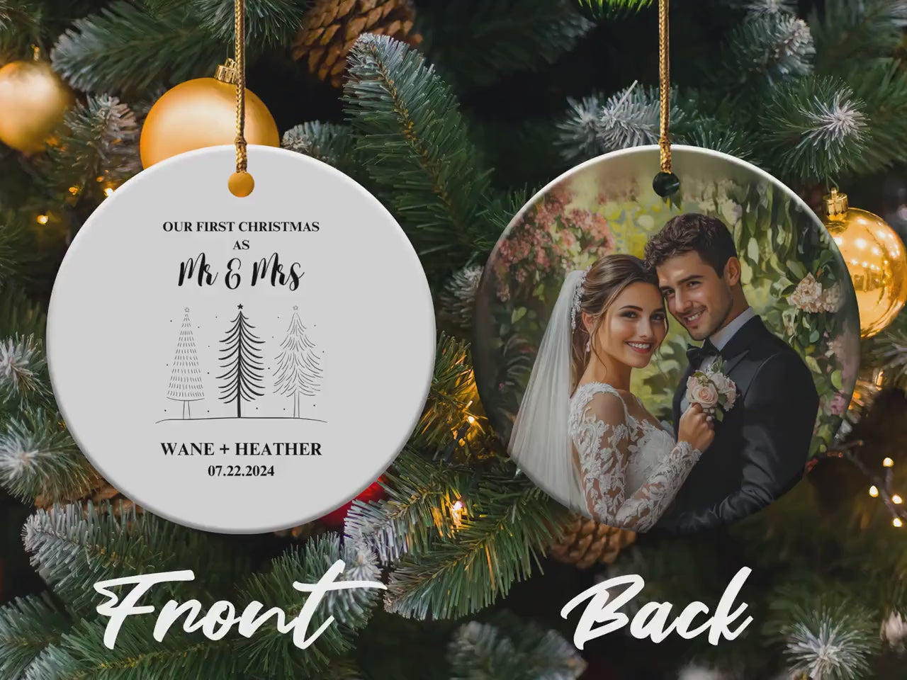 Celebrate your first Christmas as a married couple with this charming ornament. Personalize it with your names and wedding date for a unique touch. Makes the perfect gift for newlyweds to cherish their first holiday season together.