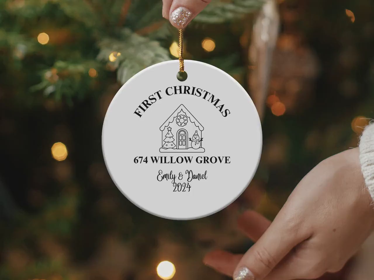 Celebrate your first Christmas in style with this personalized ornament. Perfect for family and friends, it features your custom home design and commemorates the special occasion in 2024. A wonderful keepsake to cherish memories and decorate your tree.