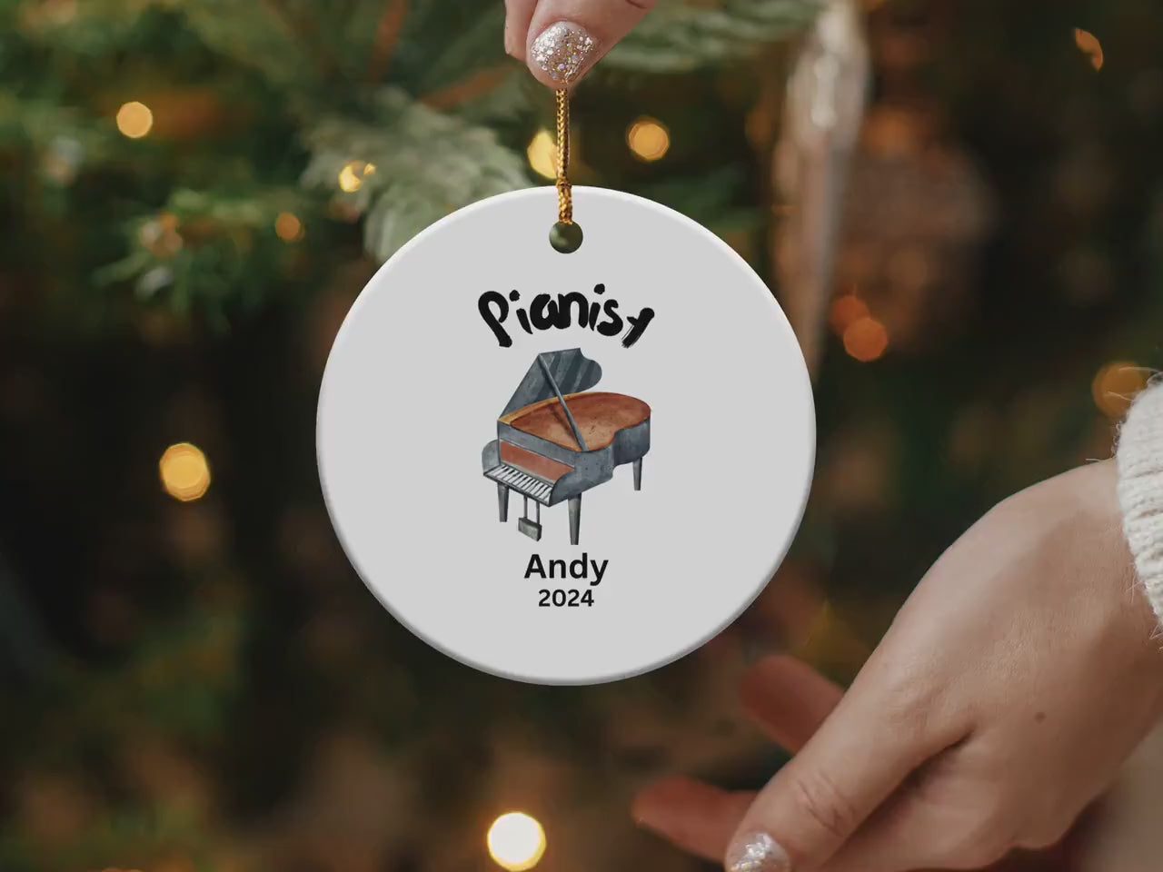 This personalized piano ornament is the perfect gift for any music lover or piano player. Featuring a unique design of a grand piano with the name "Andy" and the year "2024", this customized ornament is a great way to commemorate a special occasion or just to show someone you care. Ideal for hanging on your Christmas tree or as a year-round decoration, this piano ornament will be a cherished keepsake for years to come.