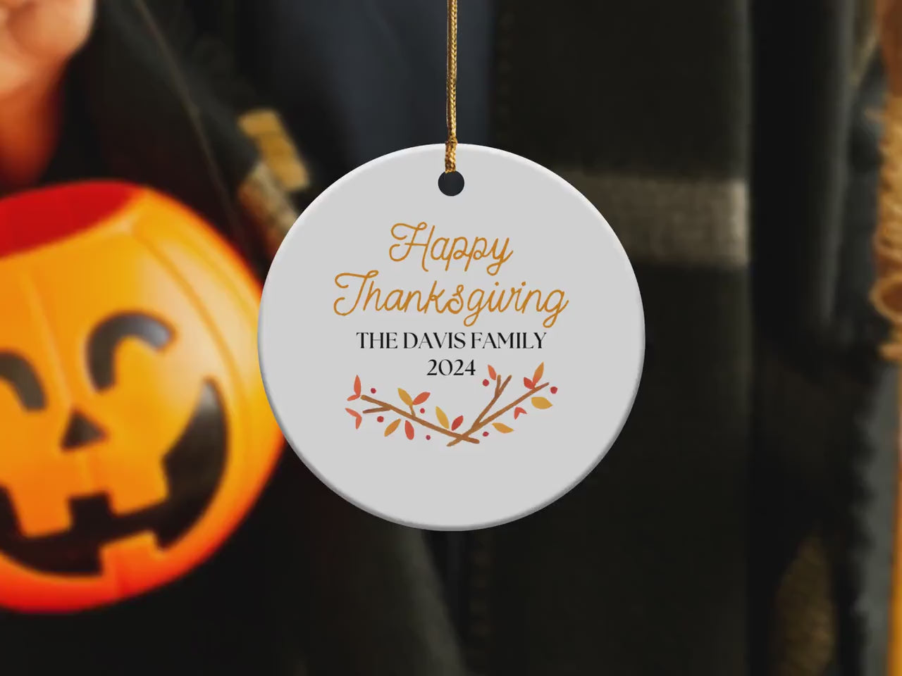 Celebrate the festive season with our Happy Thanksgiving Ornament. This custom family ornament features a beautiful and elegant design, perfect for adding a personal touch to your Thanksgiving celebrations. Great as a keepsake or a gift for loved ones, this ornament will be cherished for years to come.