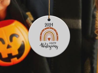 Celebrate Thanksgiving 2024 with this charming rustic ornament. Featuring a delightful rainbow design in warm autumn colors, this ornament is perfect for adding a touch of seasonal cheer to your home decor. The "Happy Thanksgiving" script adds a festive touch, making it a wonderful keepsake or gift for family and friends. Ideal for hanging on a tree, mantle, or as part of a centerpiece, this ornament brings warmth and joy to any space.