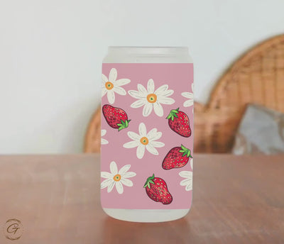 This beautiful frosted glass cup features a charming design with strawberries and daisies, making it perfect for your favorite iced coffee or any cold beverage. Ideal for adding a touch of whimsy to your kitchen or as a delightful gift for a loved one.