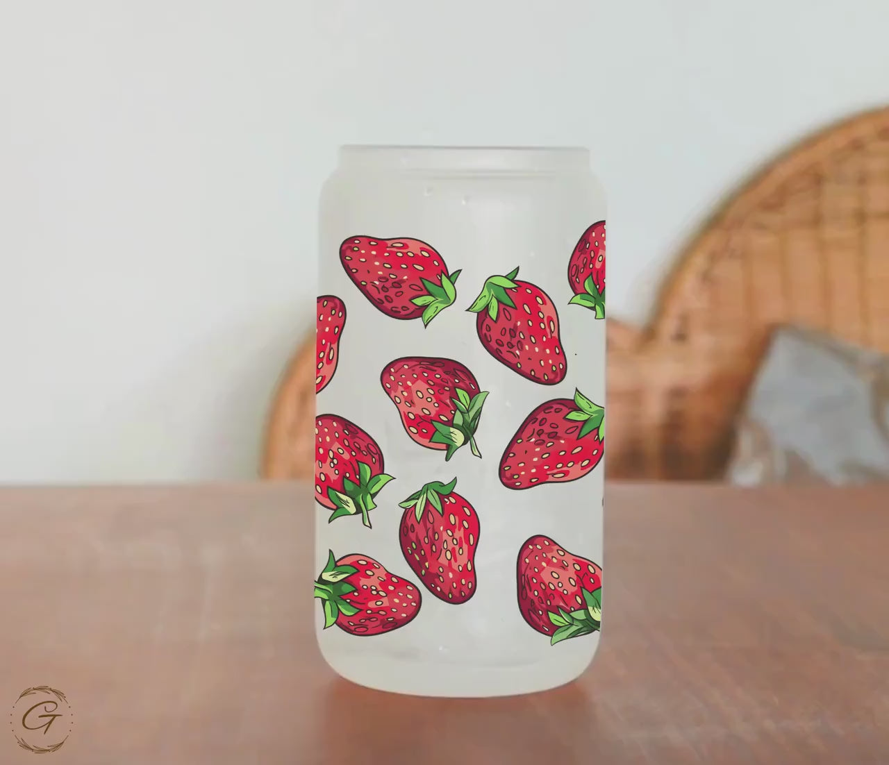 Enjoy your favorite iced coffee or drink with this vibrant Strawberry Pattern Frosted Glass Cup. Featuring a playful berry design that's perfect for a refreshing summer beverage, this glass can from Libbey is both stylish and functional. Ideal for any fruit lover, this cute drinkware makes a great addition to your kitchen or a thoughtful gift for a friend. Sip in style and enjoy a touch of summer with every drink.
