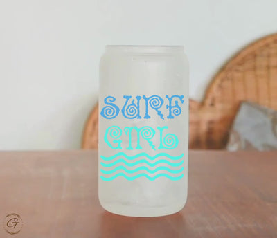 Embrace the beach vibes with our Surf Girl Frosted Glass Cup, a perfect addition to your summer drinkware collection. This beautiful Lbbey Glass Can is ideal for iced coffee, infused water, or any refreshing beverage. Show off your love for the ocean with this uniquely designed glass can, featuring playful waves and personalized text. Great for personal use or as a thoughtful gift for friends and family.