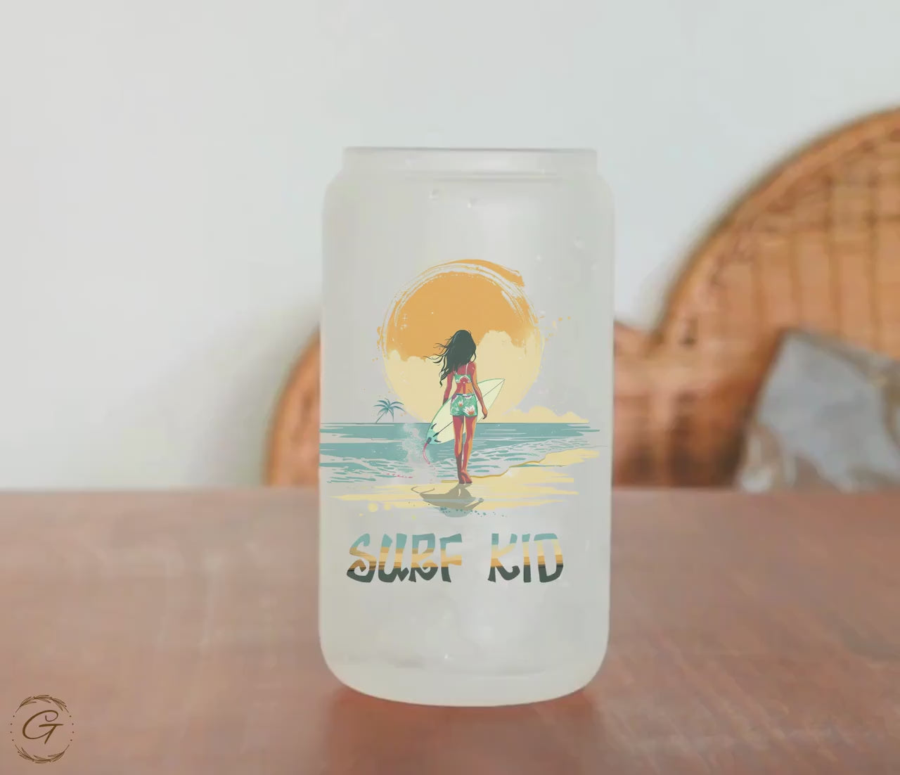 Introducing the Surf Kid Frosted Glass Cup, a unique and stylish Libbey Cup perfect for iced coffee or any cold beverages. This Glass Can features a beautiful beach design that captures the essence of summer. Personalize it with your name for a special touch. Made from eco-friendly materials, it’s ideal for those who love the beach and a sustainable lifestyle. Whether you’re at home or on the go, this cup is sure to stand out. Makes a wonderful gift for surfers, beach lovers, or anyone who enjoys a unique drinkware experience.