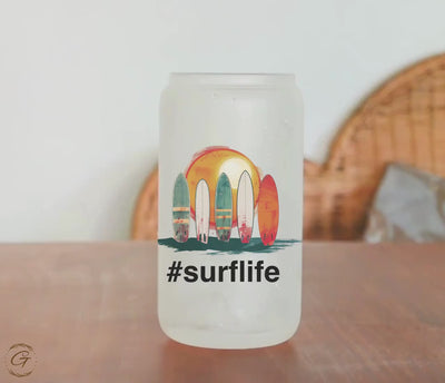 Embrace the surf life with this frosted glass cup featuring a stylish surfboard design. Perfect for your iced coffee, this glass can is an ideal gift for beach lovers and those who love summer vibes. Whether it's a day at the beach or a chill day indoors, this cup brings a touch of the ocean to your drinkware collection. Durable and trendy, it's a must-have for surf enthusiasts and a great way to enjoy your favorite beverages in style.