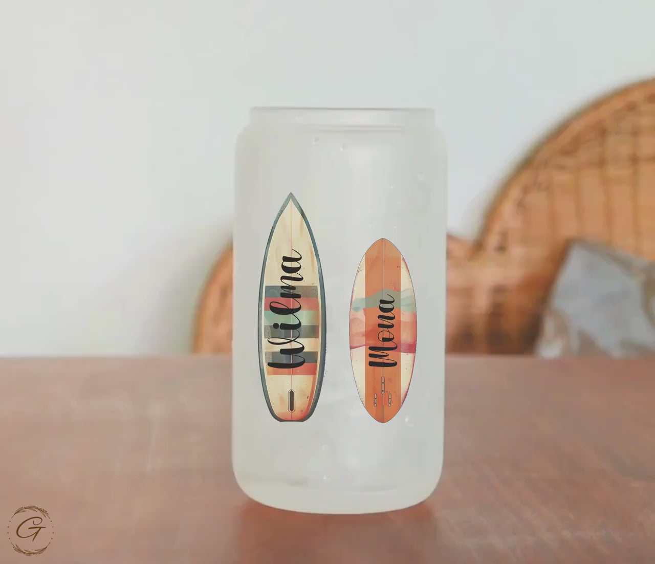 Embrace the beach vibes with our Surf Mom and Daughter design on a versatile frosted glass cup. Perfect for your morning coffee or iced drinks, this stylish Libbey cup adds a touch of coastal charm to any beverage. Ideal for surfers and beach lovers alike, it makes a wonderful gift or a unique addition to your drinkware collection.