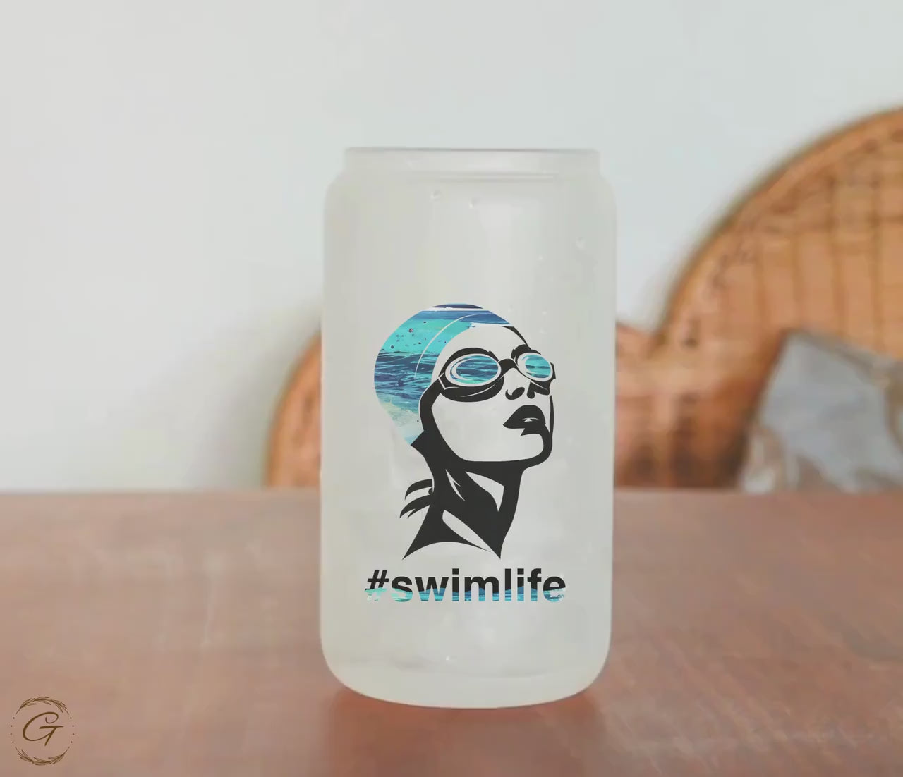 Dive into style with our Swim Life Frosted Glass Cup! This sleek Libbey cup features a chic swimmer design that's perfect for keeping your iced coffee cool. Whether you're a swimmer, a coach, or just love the poolside vibe, this glass can is a fantastic gift. Its unique and modern design makes it an excellent addition to your drinkware collection. Celebrate your passion for swimming with a stylish, functional cup today!