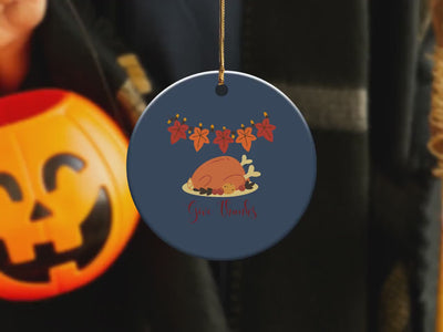 This charming Thanksgiving Turkey Ornament is perfect for adding a festive touch to your holiday decor. Featuring a cute turkey design with a leaf garland and the phrase "Give Thanks," it captures the spirit of Thanksgiving beautifully. Ideal for gifting or as a seasonal decoration, this ornament brings warmth and celebration to any home. Hang it on your tree or use it to accent your Thanksgiving table setting. Celebrate the season of gratitude with this lovely ornament.