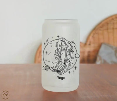 Virgo Zodiac Sign Frosted Glass Cup, Personalized Astrology Gift Coffee Cup
